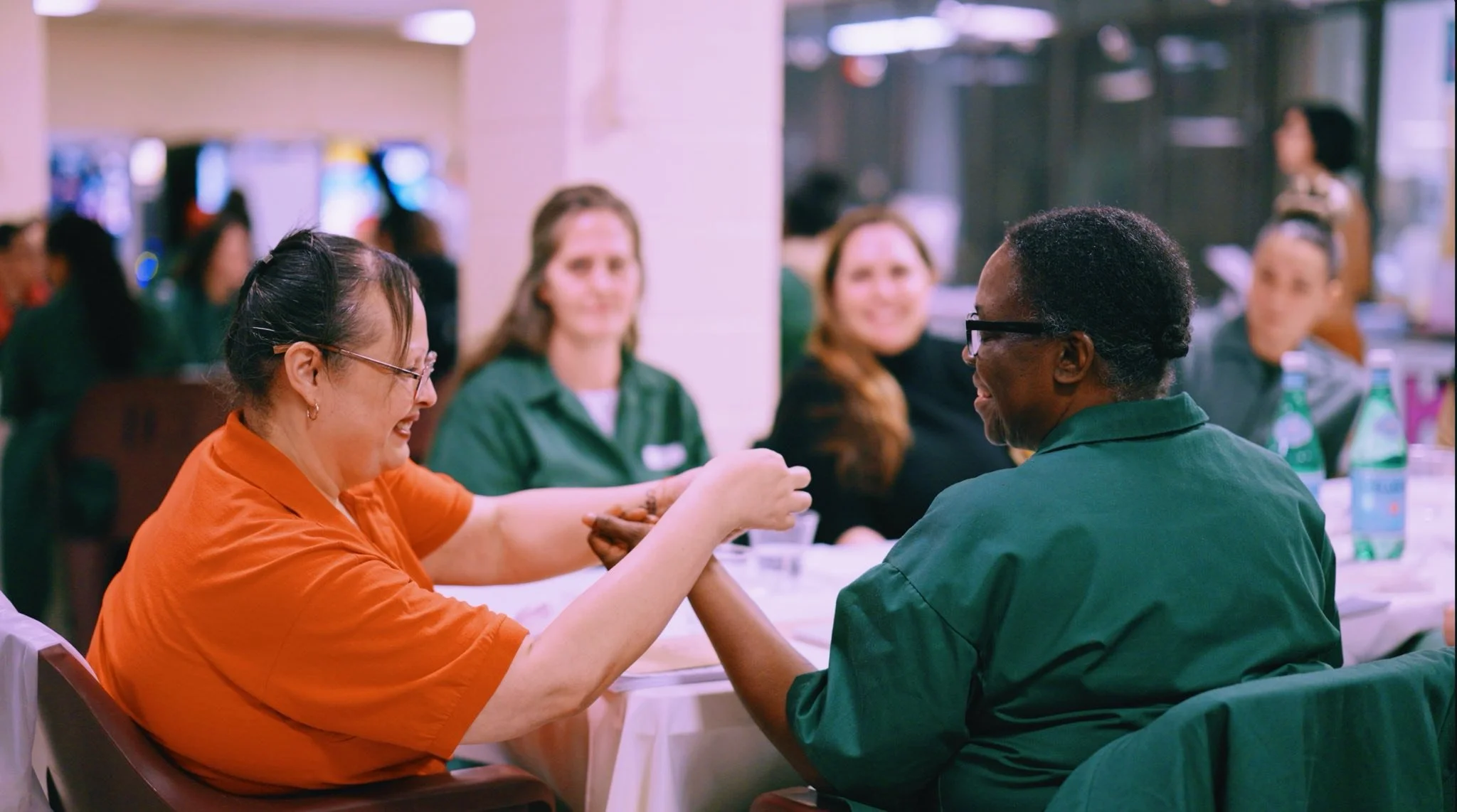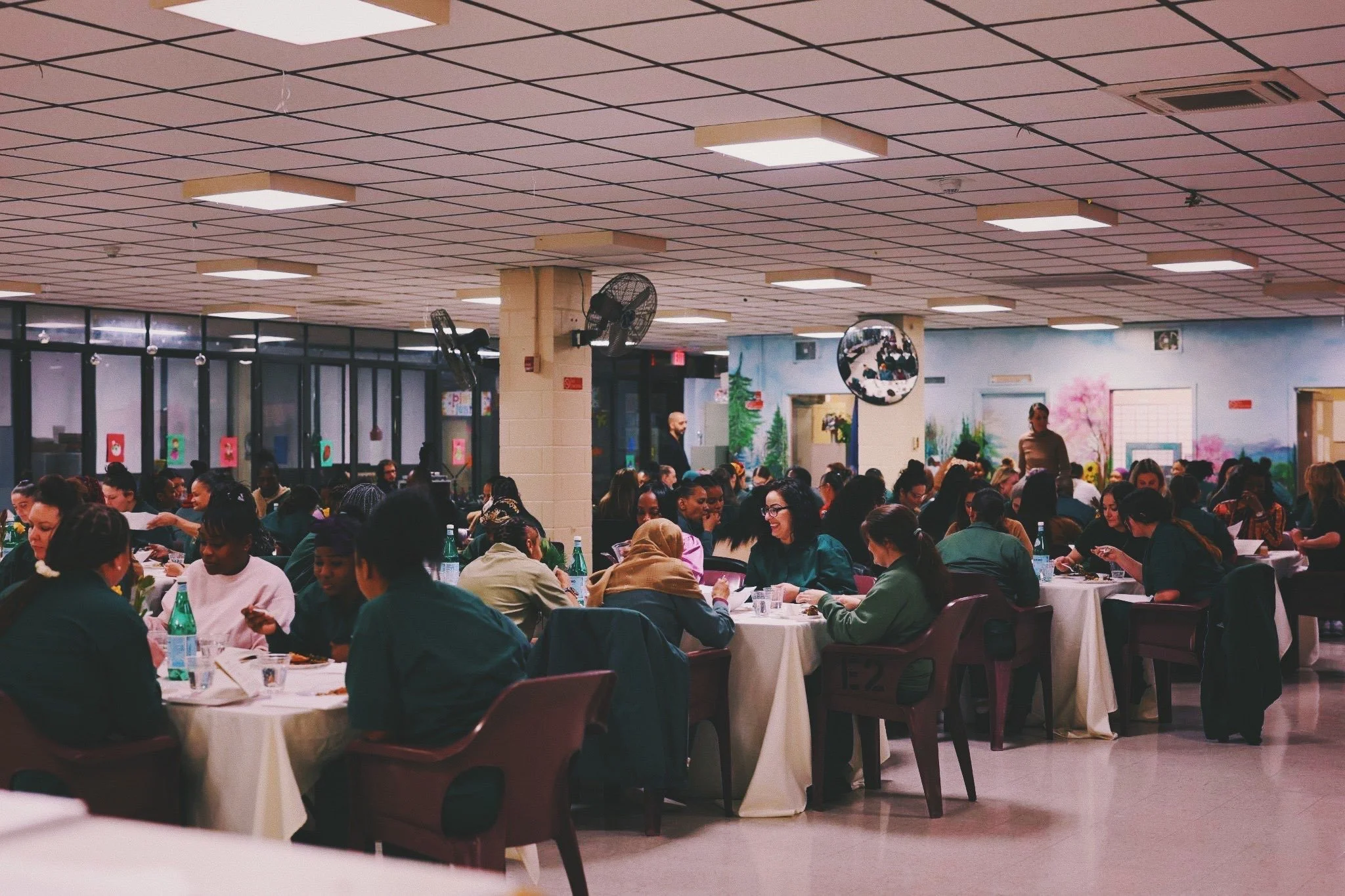 For our first Women Over Dinner in a prison, we had 73 incarcerated women in total (up from the 54 they said would come), over 100 people in the room with our people, Topeka’s guests, and Taconic staff.